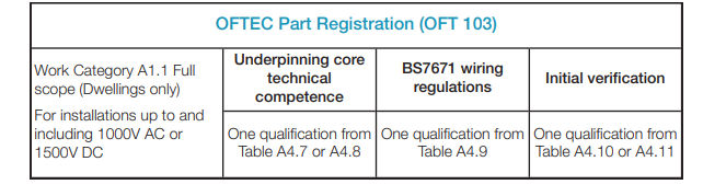 OFT103 Electrical Part P registration enables you to self-certify electrical work in accordance with Regulations 4 and 7 of the Building Regulations 2000 (as amended). Under the Building Safety Regulator (BSR) and Welsh Government authorisation this is an annual registration scheme and will be subject to an annual on-site visit by an appointed technical expert. This site visit is to assess competence and sample work to give assurance that the technician is continuing to comply with the requirements of the Electrotechnical Assessment Specification (EAS), BS7671 and Approved Document P. Registrants on the OFT 103 scheme will have access to a free technical helpline via OFTEC.
